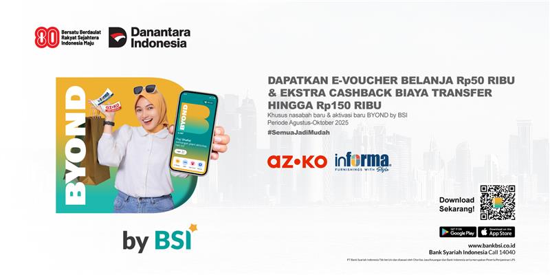 Download BYOND by BSI and keep making transactions to get exciting promos Make sure you already have BSI debit cards to activate your account easily #BYONDbyBSI #SemuaJadiMudah Download hereFor further information, please call Bank Syariah Indonesia Call 14040. Thank you, Wassalamu'alaikum Warahmatullaahi Wabarakaatuh. PT. Bank Syariah Indonesia, Tbk Copyright (c) 2025 PT Bank Syariah Indonesia Tbk. All Right Reserved. Perhatian: E-mail ini (termasuk lampirannya, bila ada) hanya ditujukan kepada penerima yang tercantum di atas. Jika Anda bukan penerima yang dituju, maka Anda tidak di perkenankan untuk memanfaatkan, menyebarkan, mendistribusikan, atau menggandakan e-mail ini beserta seluruh lampirannya. Mohon kerjasamanya untuk segera memberitahukan PT Bank Syariah Indonesia Tbk serta menghapus e-mail ini beserta seluruh lampirannya. Semua pendapat yang ada pada email ini merupakan pendapat pribadi dari pengirim yang bersangkutan tidak serta merta mencerminkan pandangan PT Bank Syariah Indonesia Tbk, kecuali telah terdapat kesepakatan antara pengirim dan penerima bahwa e-mail ini termasuk salah satu bentuk komunikasi kedinasan yang dapat di terima oleh kedua pihak. Caution: This e-mail (including attachments, if any) is only intended for the recipients listed above. If you are not the intended recipient, then you are not permitted to use, distribute, distribute, or duplicate this e-mail and all its attachments. Please cooperate to immediately notify PT Bank Syariah Indonesia Tbk and delete this e-mail and all attachments. All opinions in this email are the personal opinions of the sender concerned and do not necessarily reflect the views of PT Bank Syariah Indonesia Tbk, unless there is an agreement between the sender and the recipient that this e-mail is one form of official communication that can be received by both party. | |
